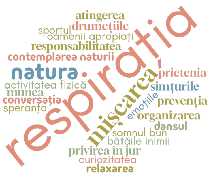 Respirația pare să fie una din cele mai comune căi de a ne întoarce în prezentul existenței noastre. Sunt fascinată de felul în care noi, oamenii, în toată diversitatea noastră, ne căutăm unii pe alții, ne regăsim în diverse comunități, ne conectăm prin elemente comune, așa cum vedem și în asocierile pe care ni le trimiteți pentru norul de cuvinte: